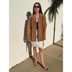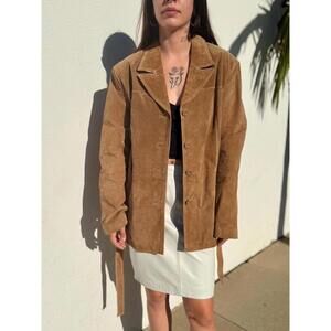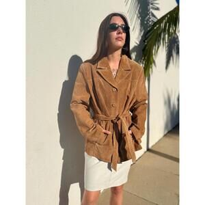 VTG Brown Leather Trench Coat Wilsons Leather Tan Suede Jacket 90s Size XL