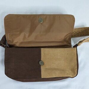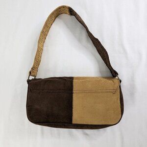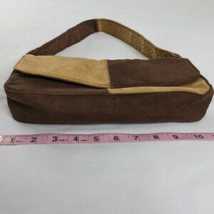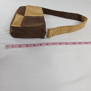 VTG Brown Tan Color Block Squares Faux Suede Mini Shoulder Bag