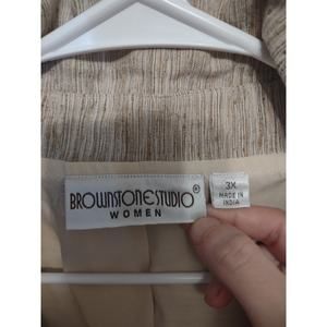 VTG BrownStone Studio Oversized Open Blazer Jacket 3X Silk Blend Neutral Boho