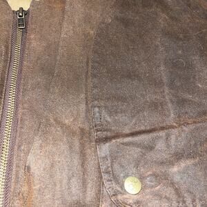 The VTG Browning Vest is a men's XL hunting vest made of cotton with a Dura Wax finish, making it water repellent. This mid-length, sleeveless vest features a solid brown color with a zip closure, suitable for casual and workwear occasions. The lightweight design and all-season features make it perfect for outdoor activities like walking, hunting, and hiking, with a vintage touch that adds a nostalgic charm to the overall style. The Browning brand ensures quality and durability, while the nature-themed accents reflect a rugged, outdoor aesthetic.