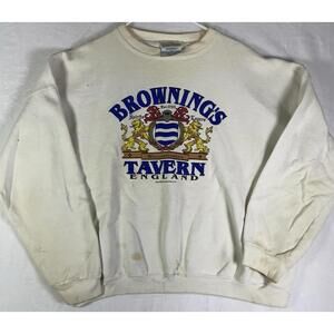 VTG Brownings Tavern Sweatshirt Mens XL Beer Lager Thrashed Crewneck 90s 1992