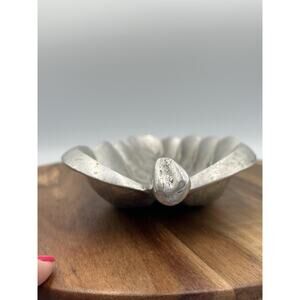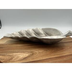 VTG Bruce Fox Pewter Leaf Shaped Catchall Dish Signed Handmade Metal Decor Tray