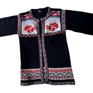 VTG Brunson of California Cardigan Medium Black Knit Tribal Aztec Oriental READ