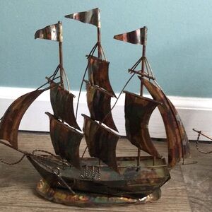 VTG Brutalist Copper coated Mid-Century Sculpture Sailing Ship Boat. whimsical