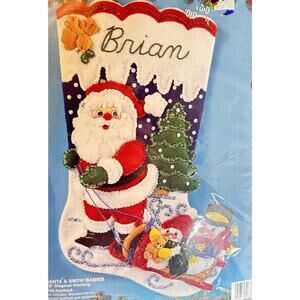 VTG Bucilla Santa and Snow Babies Felt Applique Stocking Kit 83116 NEW Christmas