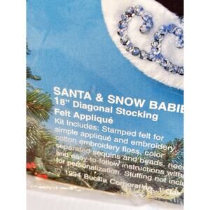 Vintage 1994 Bucilla Santa and Snow Babies 18" Diagonal Stocking Felt Applique Kit, NEW. Kit # 831169. New unopened package. Sold as shown, please see all photos.