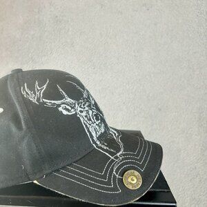 VTG Buck Wear Smoke Em Deer Graphic Hat Strapback Adjustable Black Camo Brim