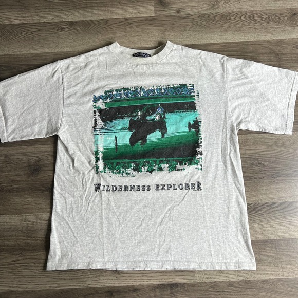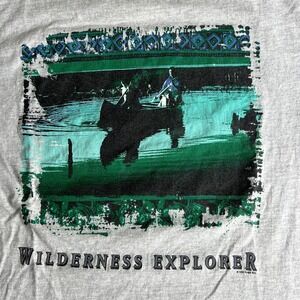 VTG Bugle Boy T Shirt Mens Large Wilderness Explorer Canoe Lake Fishing 1990s