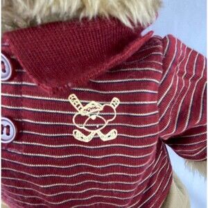 Vintage retired Build-A-Bear Curly Bunny Rabbit Plush in original full Golfer outfit (Cap, polo shirt, khakis and lace up shoes). Straight ears. And TALKS when you press his paw he says "I Love You", works perfectly! In very excellent preowned condition. Does not come with original box or paperwork.