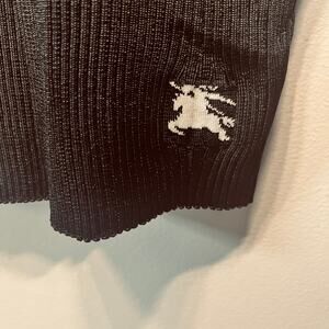 VTG Burberry Cut Out Turtleneck Black Ribbed Knit Stretchy Minimalist Office S