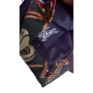 The product is a vintage Burberry London tie with a baseball theme, made from 100% silk. The multicolor tie features the Burberry London logo as accents, and is designed in a classic style with a length of 57"-60" and a width of classic width. It is adjustable and perfect for men looking to add a touch of designer style to their wardrobe. Made in the United States, this tie is a unique and high-quality accessory for any formal occasion or unique fashion statement.