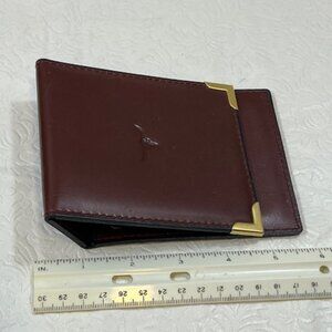 VTG Burgundy Red Leather 3.25"x3.75" Notepad Holder Longhorn Motif Logo