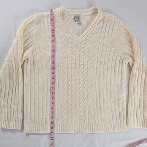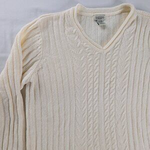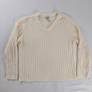VTG Butter Yellow Cream Chenille Cable Knit V Neck Sweater Cottage Anglercore