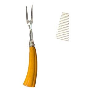 VTG Butterscotch Bakelite & Stainless Steel Meat Fork Cake Breaker Cheese Slicer