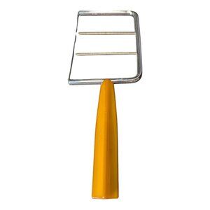 Vintage butterscotch bakelite and stainless steel meat fork, cake breaker, and cheese slicer. This yellow multi-purpose utensil is perfect for any kitchen.
