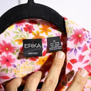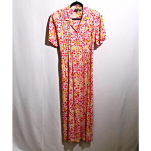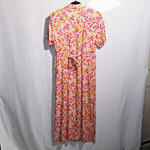VTG Button Up AOP Floral Maxi Dress Notch Collar Flowers Pockets Boho Cottage Fairy M rayon breathable short sleeve midi maxi long collared pleated vintage bohemian flower power groovy hippie Erika prairie all over print pink multicolor romantic