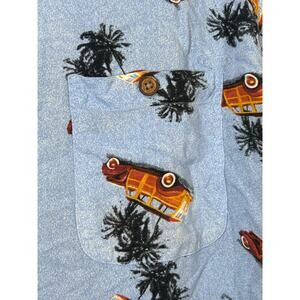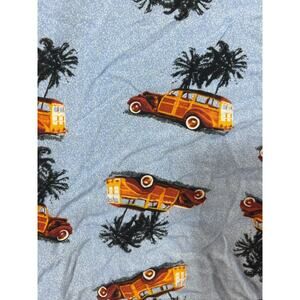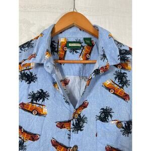 VTG Button Up XL Blue Hawaiian Style Retro Car Station Wagon Palm Tree Aloha