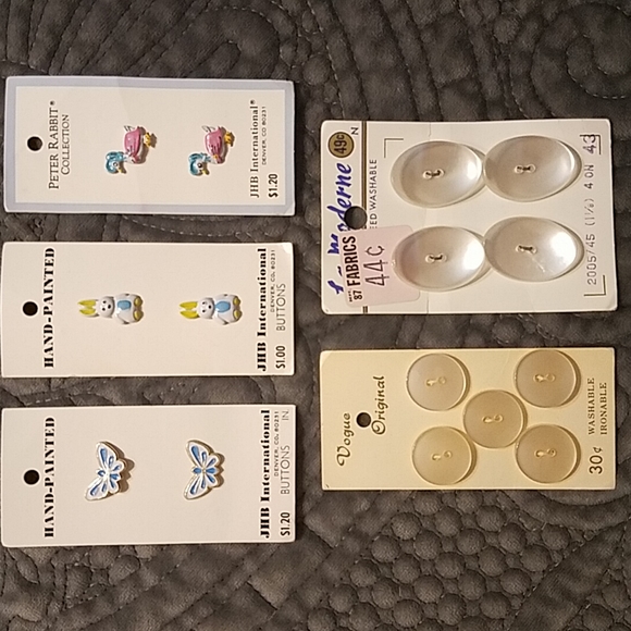 Beautiful, vintage buttons on original cards. Some rare, hand painted, Vogue, JHB International-Peter Rabbit Collection and La Moderne... in great unused condition. Cards may have signs of bends from being stored. See pics for details.π
