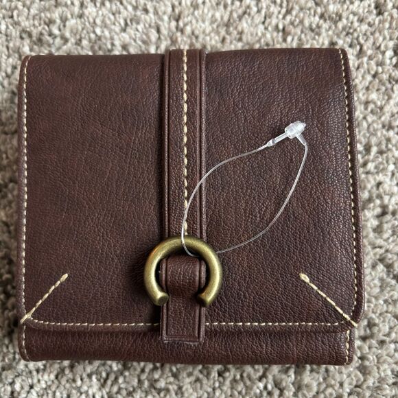 VTG. Buxton Tri Fold Framed Carde Brown Leather Wallet Change Purse 4.5" x 4.5"