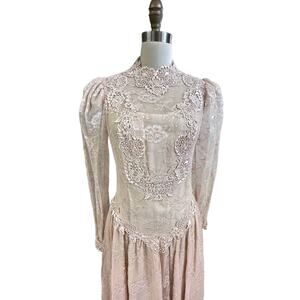 VTG CACHET by BARI PROTAS Blush Pink Lace Victorian Revival Dress 80s Sz M
