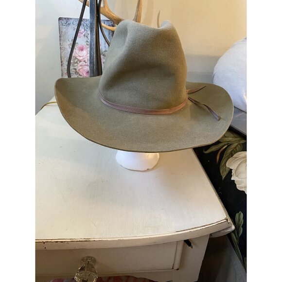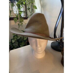 GREAT PREOWNED VINTAGE CONDITION! HAS BEEN WORN TO PERFECTION! GREAT SHAPE, HAT BAND AND INSIDE TAG GETTING A LITTLE RAGGED, BUT STILL VERY WEARABLE. STYISH, MOD, HIP, GRUNGE. SLIGHT EVEN DISCOLORATION FROM SUN. GREAT BROKE IN COWBOY HAT!
