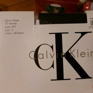 VTG CALVIN KLEIN SILKEN SHEER 20 DENIER STYLE 791 OFF BLACK SZ 2 PANTYHOSE