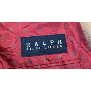 Stylish Ralph Lauren tan sport coat in size 41S. Made from 100% camel hair, it features a three-button design, lining, and structured fit. Ideal for sophisticated menswear.