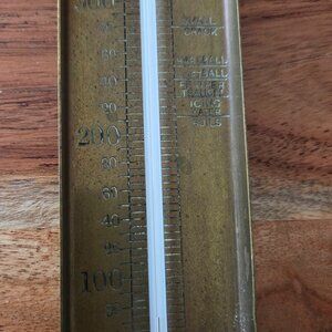 A 10 inch long (including handle) vintage brass candy or jelly thermometer.