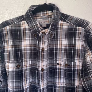 VTG CARHARTT Button Down Shirt Men's Large Plaid Long Sleeve Collared See Note