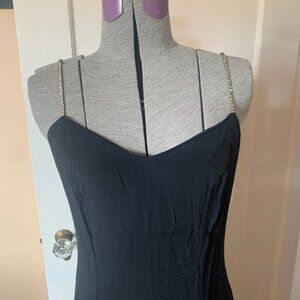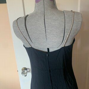 VTG CAROL ANDERSON Black Maxi Dress sz 7/8 Rhinestone Spaghetti Straps Formal