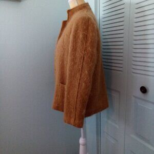 VTG CAROLE LITTLE for SAINT-TROPEZ WEST size 12 WOOL MOHAIR OPEN FRONT CARDIGAN POCKETS WOVEN.