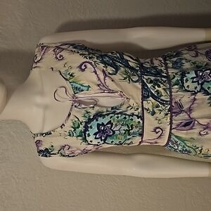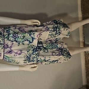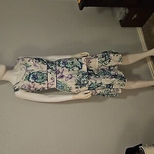VTG CENTRAL FALLS Project X Floral Paisley Sleeveless Split Neck Tier Skirt Set