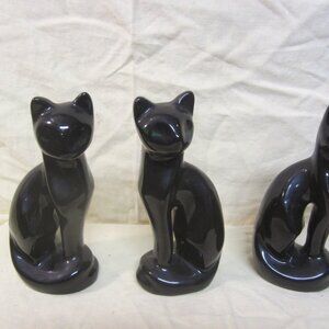 VTG CERAMIC BLACK CATS W/GREEN HANDPAINTED EYES, ELEGANT CATS price is each