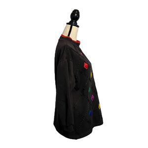 VTG CHANCE ENCOUNTERS Black Pull Over Sweater Bright Multicolor Diamonds Medium