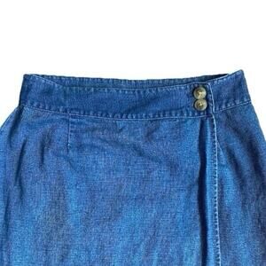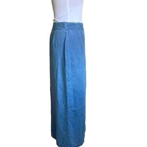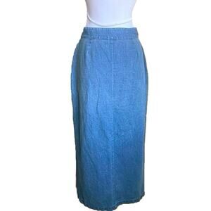 Vintage CHEROKEE Denim Linen Button Wrap Maxi Skirt Size 8 90s Country Western Boho
