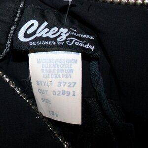 VTG CHEZ OF CALIFORNIA SZ 18 W Black Maxi Dress Drop Waist Chiffon Jeweled Plus