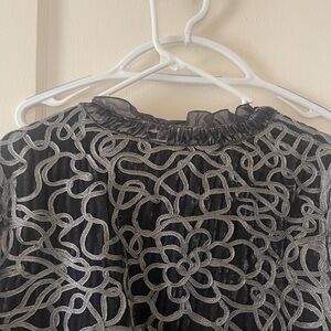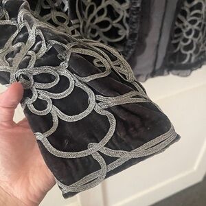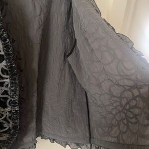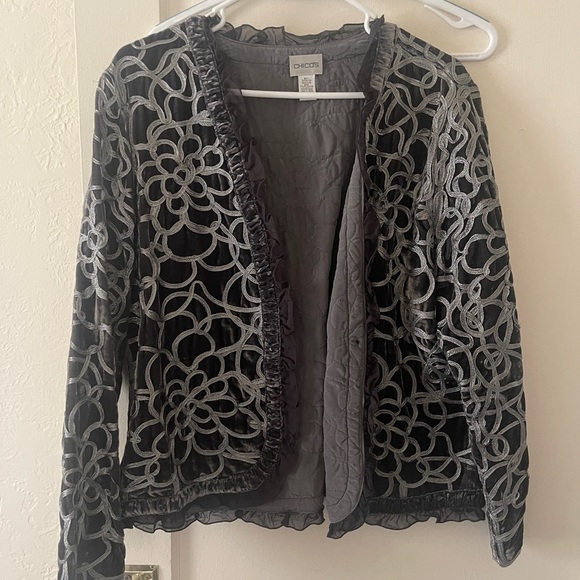 VTG CHICO Grey Metallic floral JACKET Blazer Bohemian Ruffle Artisan Sz 2