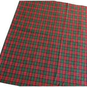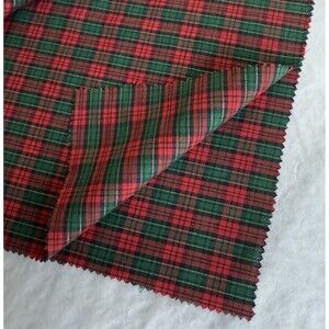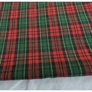VTG CHRISTMAS RED GREEN LUREX PLAID TARTAN FABRIC POLY COTTON BLEND REMNANT