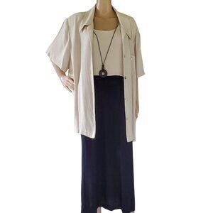 VTG CHRISTY LYN 2 Pc Maxi Dress Jacket Shirt Set Women's 20W Tan Black Necklace