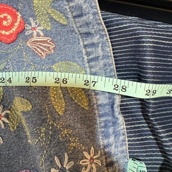 VTG CJ Banks Denim Tunic X (14W) Blue Embroidered Floral Boho Cottagecore Y2K Condition: Previously worn with moderate wear from use and/or washing.