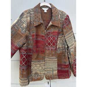 VTG CJ Banks Tapestry Jacket Brown Red Patchwork Zip Front Plus 1X Boho Y2K Fall