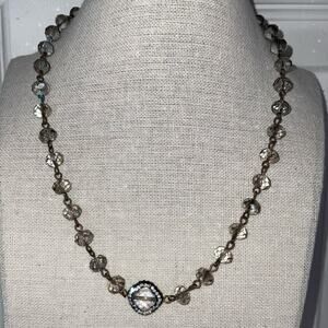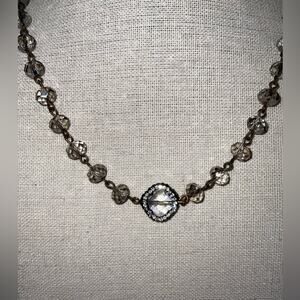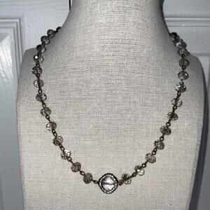 VTG CLEAR FACETED CRYSTAL BEADS CLOVER PENDANT NECKLACE 8”