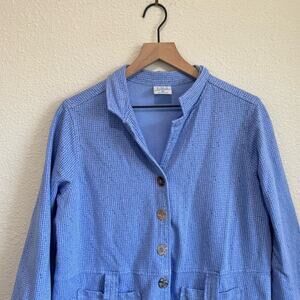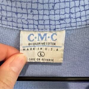 VTG C.M.C Womens Large Button Down Shacket Blouse Lagenlook Artsy Cotton Striped