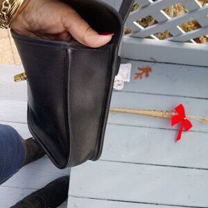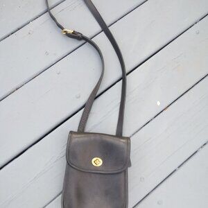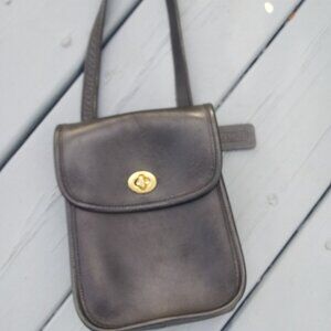 VTG COACH BLACK Side pack Turnlock Leather cross Body Phone Purse 9978 USA