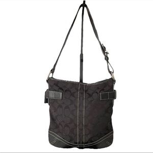 VTG COACH Black Monogram SOHO SLIM Jacquard Canvas Signature Shoulder Bag Purse. In very good condition. Shows a little wear (mostly on hardware). Measures approximately 10”H x 9.5”W x 1”D. Strap is adjustable.