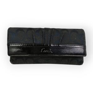 VTG COACH CC SIGNATURE CANVAS BLACK GENUINE LEATHER WALLET PURSE CLUTCH