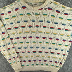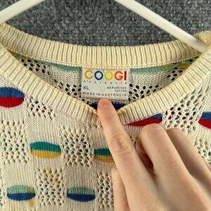 VTG COOGI Australia Sweater Colorful 90s XL Cotton White Red Blue Lightweight