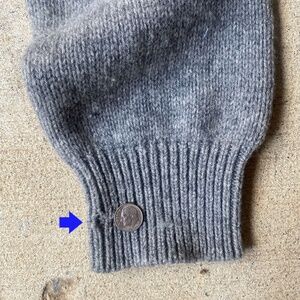 Circa 2005, CP Company Wool sweater with Nylon trim detail and retractable hood. States men's size 50 which is US XXL. Fits more like an XL. Measurements are; from pit to pit 24", from high point of shoulder (neck) to bottom hem 27" and sleeve length is 27". Images show 2 small holes on the wearer's right sleeve cuff and in the neck rib.