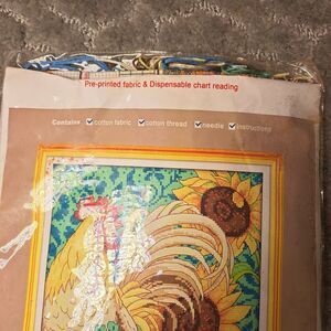 VTG CROSS STITCH KIT SUNFLOWER ROOSTER EMBROIDERY TAPESTRY COUNTRY FARM