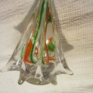 VTG CRYSTAL CHRISTMAS TREE W/SWIRL COLORS IN CENTER HAND MADE